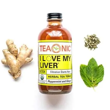 TEAONIC I Love My Liver Detox Tea, Ginger, Hibiscus, Dandelion, 100% Organic Sugar-Free Herbal Detox Tea, 8 Fl. Oz Each, Pack of 12
