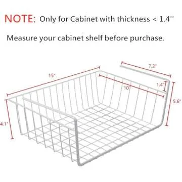 Tebery 2 Pack White Under Shelf Wire Basket Hanging Storage Baskets, Under Cabinet Add-on Storage Racks Slide-in Baskets Organizer for Kitchen Pantry Desk Bookshelf