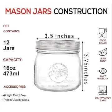 Show more If you're looking for the perfect gift that embodies both functionality and charm, look no further! This Set of 12 High-Quality Glass Jars is made from premium glass that is BPA-free and Lead-free, ensuring safety for all your preserving needs. Each jar measures 3.5 * 3.5 * 4 inches and can hold up to 16 fluid ounces, making them ideal for canning, pickling, and crafting. Whether you're a seasoned canner or just starting with home preservation, these jars are designed to make your experience seamless.