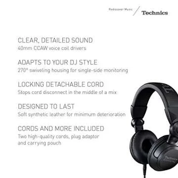 Technics Professional DJ Headphones with 40mm CCAW Voice Coil Drivers, 270° Swivel Housing and Locking Detachable Cord; Lightweight, Foldable High Input - EAH-DJ1200 (Black)