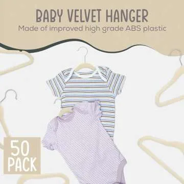 TechZoo 50 Premium Baby Velvet Hangers - 11.8" Inch Non-Slip Baby Hangers, Ultra-Slim Space-Saving Children Hangers - 360° Swivel Hook, Strong & Durable Infant & Toddler Clothes Hangers - Ivory
