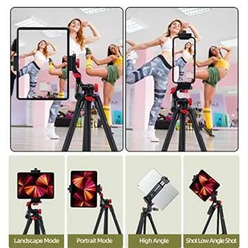 teefeet Tablet Tripod 53 inch for iPad Tripod Aluminum Smartphone Tripod for iPhone iPad Pro Camera Mobile Phone Lightweight Travel Selfie Stand Tripod Red