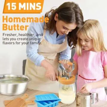 TeeMars Butter Churner - Hand Crank Butter Churner Mason Jar with 2 Butter Paddles, Silicone Butter Mold with Lid, Cheese Cloth & Butter Recipe, Homemade Butter in 15 Min, Glass Manual Butter Maker