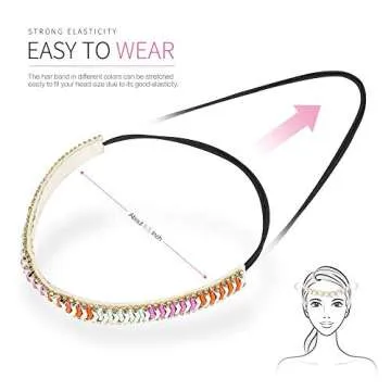 Teenitor 6 Pieces Elastic Rhinestone Beaded Women Headbands, Handmade Vintage Jewelry Hair Bands for Girl Hair Accessories 20-26.8’’ Multicolor