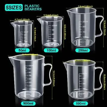 Teenitor Graduated Cylinder Plastic Beaker, 5pcs Plastic Graduated Cylinder 10ml 25ml 50ml 100ml 250ml and 5pcs Plastic Beakers 50ml 100ml 250ml 500ml1000ml Clear 10pcs