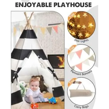 Show moreIntroducing the Teepee Tent for Kids by xiaowantong, a perfect blend of fun and functionality designed to create a magical play environment for your little ones. Made from 100% natural breathable cotton canvas, this teepee tent ensures a safe haven free from harmful substances, ensuring peace of mind for parents. The tent features robust pine poles that are smooth and paint-free, providing stability and durability while still being lightweight and portable. Your kids can easily set it up for playtime or pack it up for outdoor adventures in the convenient carry bag included.