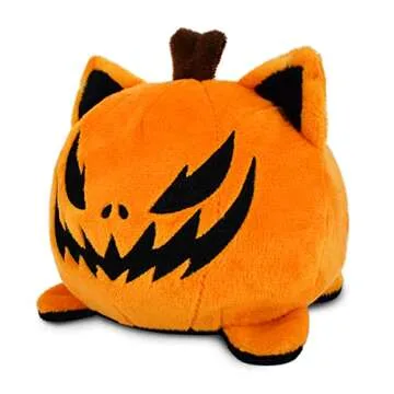 TeeTurtle - The Original Reversible Cat Plushie - Black + Pumpkin - Cute Sensory Fidget Stuffed Animals That Show Your Mood - Perfect for Halloween!