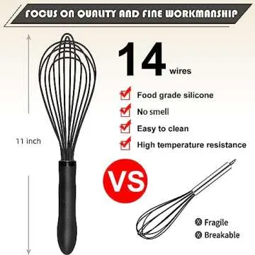TEEVEA Silicone Whisk,Kitchen Silicone Whisks for Cooking Non Scratch,Wisking Tool Metal Wire Stainless Steel Whisk Egg Bread Silicone Wisk,Small Mini Heat Resistant Whisk 11-Inch,Black