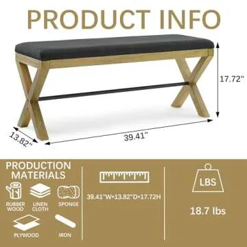 TEFUNE Cushioned Storage Ottomans, Bedroom Stool, Woven Bed Stool with Cross Wooden Legs, Suitable for Living Room and Bedroom (Black, 13.8 * 17.7 * 39.4)