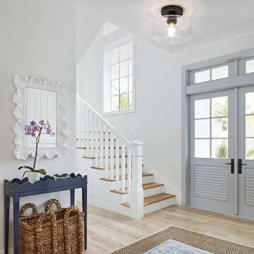 TeHenoo Industrial Ceiling Light Fixture,Clear Glass Shade, Semi Flush Mount Ceiling Light for Hallway, Entryway, Cafe, Bar, Corridor, Porch,Passway
