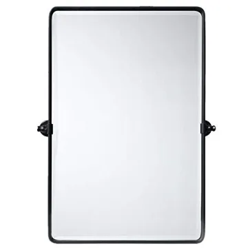 TEHOME Matt Black Pivot Rectangle Bathroom Vanity Mirror with Beveled Glass 27x35
