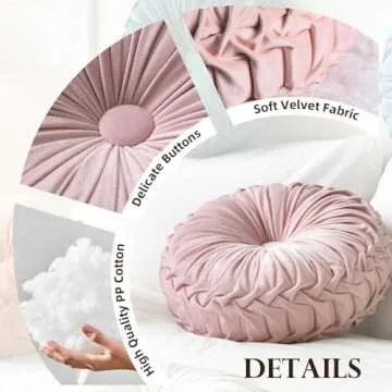 Teieas Round Throw Pillow Velvet Home Decoration Pleated Round Pillow Cushion for Couch Chair Bed Car Blush