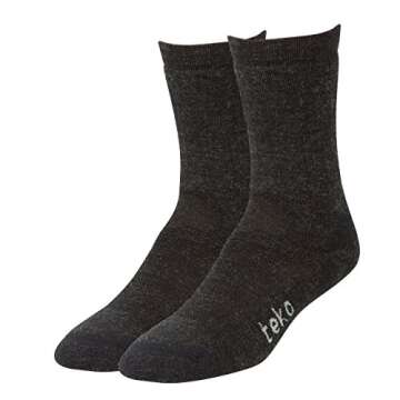 Teko SIN3RGI Organic Merino Wool Midweight Casual, Walking and Hiking Socks for Men and Women, Charcoal, Small