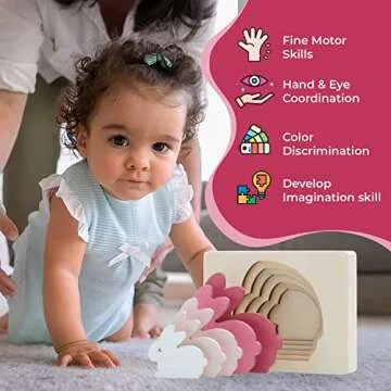 TEKOR Wooden Multi-Layered Animal Puzzles Unique Bunny Wooden Animal Puzzle Montessori Panel Early Educational Toys for Kids Ages 2 and Up | Colorful Wooden Puzzle for Toddlers