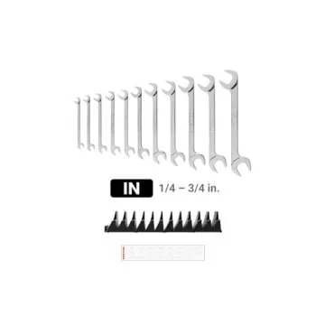 Show moreIntroducing the **TEKTON Angle Head Open End Wrench Set with Modular Wrench Organizer** – your essential companion for optimizing efficiency and access to tight spaces during mechanical work. Designed with a comprehensive set of 11 angle head wrenches ranging from 1/4" to 3/4", this top-tier handyman toolkit caters to both professionals and DIY enthusiasts. Crafted from premium 4140 Chrome Moly Steel, these wrenches not only promise unparalleled strength and durability but also feature a lean design that minimizes weight without sacrificing performance.