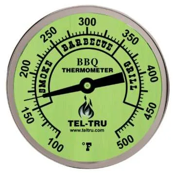Tel-Tru BQ300 Barbecue Thermometer - 3" Glow Dial, 2.5" Stem, Durable & Precise Temperature Range 100-500°F
