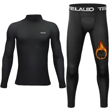 TELALEO Boys' Girls' Long Sleeve Compression Thermal Tops & Leggings Set