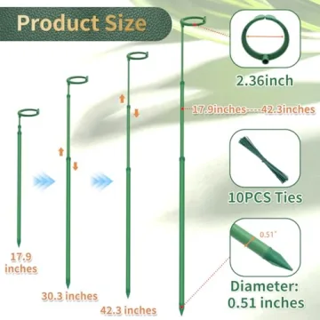 Crafted from high-quality fiberglass, our plant stakes are built to last. Each set comes with three sturdy extendable stakes, three detachable top clips, and ten green ties, allowing you to customize support for any plant type. The natural green finish blends effortlessly into your garden, preserving the beauty of your plants while providing the structure they need to grow. Easy installation means you can set up your plant support system in minutes—simply adjust the length, insert the stakes into the soil, and fasten the buckles for a stable, effective solution.