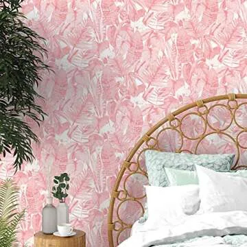 Show moreTransform your living space into a tropical oasis with the Tempaper Pink Lemonade Tropical Removable Peel and Stick Wallpaper. Made in the USA, this stunning wallpaper features a beautiful design of pink palm trees that instantly brings a sense of island adventure into any room. Whether you're looking to enhance your bedroom, bathroom, or any other area, this easy-to-use wallpaper allows you to peel and stick with no mess or hassle. Measuring 20.5 inches by 16.5 feet, it’s the perfect solution for a refreshing décor upgrade!