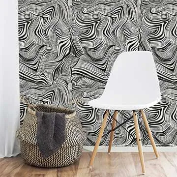 Tempaper x Novogratz Waverly White & Black Zebra Marble Removable Peel and Stick Wallpaper, 20.5 in X 16.5 ft, Made in The USA
