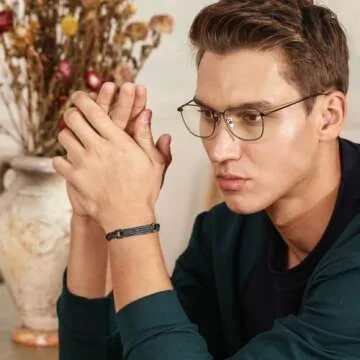 TempBeau Black Cross Bracelet for Men - Black Bible Verse Stainless Steel Chain Mens American Flag Bracelet Birthday Gift Ideas First Communion Confirmation Baptism Christian Easter Gifts for Men,3