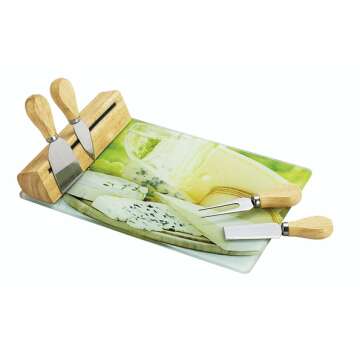 | Set Composition | 1 × 300 × 200 mm glass board with magnetic rubberwood holder; 1 × Parmesan shaver (2 ½″), 1 × cheese fork (2 ½″), 1 × soft‑cheese knife (2 ½″), 1 × hard‑cheese blade (2 ¼″) |