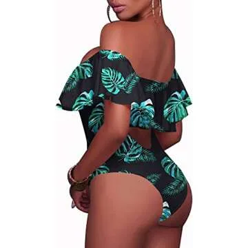 Show moreIntroducing the Tempt Me Women Black Green Sexy One Piece Ruffled Off Shoulder Lace Up Bathing Suit, where fashion meets function in a stunning design that will leave you feeling glamorous and confident. This exquisite one-piece bathing suit features captivating off-shoulder details coupled with striking lace-up accents at the front, creating an ensemble that not only enhances your figure but also highlights your unique style. With a daring cutout design on the back, this swimsuit brings sophistication to your sunny outings while providing ample coverage and comfort for all your aquatic adventures.