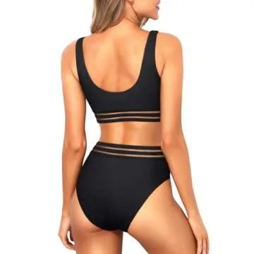 Tempt Me Women’s Black Sport High Waisted Bikini Two Piece Swimsuit with Adjustable Straps