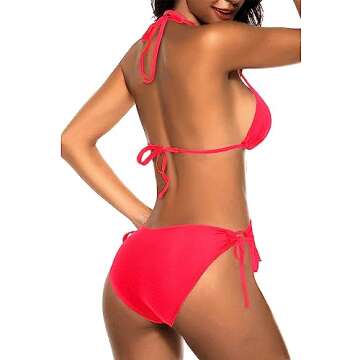 Tempt Me Women Neon Red Triangle Bikini Sets Halter Two Piece Sexy Swimsuit String Tie Side Bathing Suit M