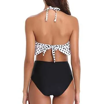 Show moreIntroducing the Tempt Me Women White Polka Dot Two Piece Swimsuits, where vintage charm meets modern functionality. This stylish halter bikini is beautifully designed with a classic polka dot pattern that pays homage to timeless swimwear styles. Featuring adjustable ties at the back and neck for a customizable fit, this swimsuit includes a removable padded bra that enhances your shape while ensuring modesty with no see-through options. Perfect for teen girls and young women alike, it’s designed to make anyone feel effortlessly chic.
