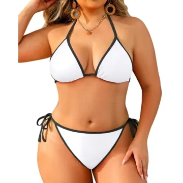Show moreIntroducing the Tempt Me Women White Black Plus Size Triangle Bikini Sets! This stylish two-piece bathing suit is designed specifically for the curvier frame, offering both comfort and confidence. Featuring a chic triangular top with removable pads, this bikini provides excellent support while enhancing your natural silhouette. The halter-style design of the top and the adjustable tie-side bottoms allow for a customizable fit, making it perfect for all body types. With an appealing color block pattern, this bikini is sure to turn heads at every summer gathering.