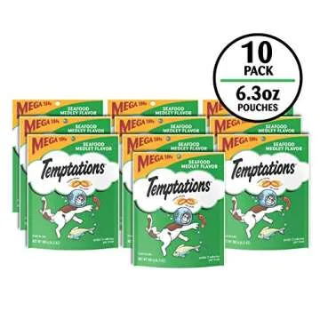 Temptations Classic Crunchy and Soft Cat Treats Seafood Medley Flavor, 6.3 oz. Pouch (Pack of 10)