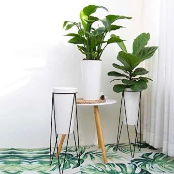 Ten-stone 2 Packs 21" Metal Stand with 6.7" Self Watering Pots,Corner Pots for Plants,Simple Design, Suitable for Indoor and Garden (Large, White)