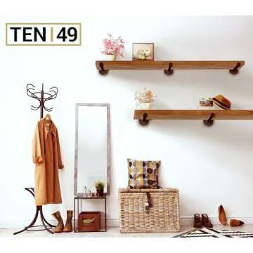 TEN49 Industrial Rustic Wood Wall Shelf - 60" Espresso Real Wooden Shelving w/ 1.8" Extra Thickness - Modern Interior Decor Floating Shelves w/ Pipe Brackets - Farmhouse Style Bookshelf - Set of 2