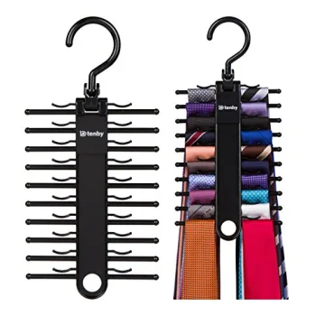 Show moreTransform your closet organization with the Tenby Living 2-Pack Black Tie Rack, designed to hold up to 20 ties, making it the perfect solution for any gentleman who appreciates a well-organized wardrobe. Crafted from durable ABS plastic and finished in a sleek black glossy design, this tie rack not only looks sophisticated but is built to last. Its clever design features clips that prevent slipping, ensuring your ties remain firmly in place, thus avoiding any hassle while selecting your favorite neckwear. Plus, with a 360-degree rotating hanger hook, accessing your ties has never been easier, allowing you to quickly pick out the perfect one for any occasion.