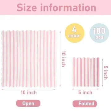 Measuring an impressive 9.84 x 9.84 inches when unfolded, these striped beverage napkins strike the perfect balance between practicality and aesthetics. When folded, they fit neatly into a square shape of approximately 5 x 5 inches, making them not only functional but also convenient to handle. Serve cocktails or appetizers with style!