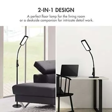Show moreDiscover the versatility of the Tenergy LED Floor Lamp Desk Lamp, a revolutionary lighting solution that effortlessly adapts to your lifestyle. This innovative 2-in-1 lamp combines functionality with style, allowing you to transform it from a tall floor lamp to a compact desk lamp in seconds. With a maximum extension height of 5.7 feet and an easy-to-handle design, it's perfect for illuminating everything from your reading nook to your crafting space.