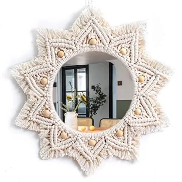 Show moreElevate your home aesthetic effortlessly with the TENEWEE Boho Wall Decor Mirror, designed to bring a touch of rustic charm to any space. Crafted with high-definition mirrors and elegant macrame detailing, this decorative piece is perfect for your living room, bedroom, or entryway. With a total diameter of 17.7 inches and a mirror diameter of 9.8 inches, it strikes the perfect balance between functionality and style. Hang it easily using the included hooks, and add a chic, bohemian vibe to your home decor.