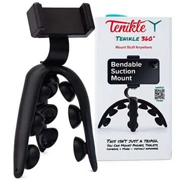 Tenikle® 360° - Flexible Tripod for Camera GoPro, As Seen on Shark Tank, Bendable Suction Cup Camera & Phone Mount, Holder, Compatible w/iPhone & Android (Black)