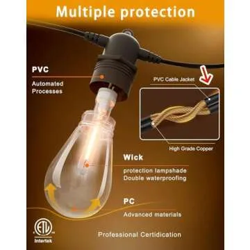 Show moreIlluminate your space with the stunning Tenmiro 50FT Outdoor String Lights—a remarkable solution for enhancing ambiance both indoors and outdoors. With a remarkable blend of vintage charm and modern energy efficiency, this string light features 15+1 high-quality Edison bulbs that exude warm, inviting light while dramatically cutting energy costs by up to 90% compared to standard incandescent bulbs. Designed to last over 30,000 hours, these LED lights significantly reduce the need for frequent bulb replacements, making them not only stylish but also budget-friendly and practical.