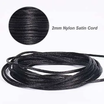 Tenn Well Nylon Satin Cord, 295 Feet 2mm Black Silky Rattail Cord Necklace String for Jewelry Making, Bracelets, Necklaces, Lanyards, Keychains, Beading