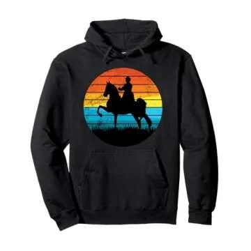 Show moreIntroducing the ultimate pullover hoodie for horse enthusiasts: the Tennessee Walking Horse American Saddlebred Retro Sun Design Hoodie. This carefully crafted hoodie is not just a piece of clothing; it's a celebration of the elegance and beauty of gaited horses. Made from 8.5 oz of high-quality fabric, its classic fit ensures maximum comfort, whether you're riding, relaxing at home, or attending equestrian events. The twill-taped neck further enhances durability, making it a reliable addition to your wardrobe.