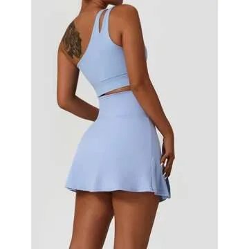 Tennis Dress for Women Athletic One Shoulder Sport Bra Sport Bra Skorts Skirts Sets High Waist Side Slipt Golf Skirts Medium Support Yoga Bra 2 Piece Workout Sets Blue Medium