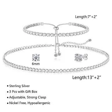 Tennis Necklace Set for Women Crystal Bracelet Diamond Earrings Wedding Jewelry for Bride Sterling Silver Jewelry Sets Pack of 3 Valentine’s Day Gift