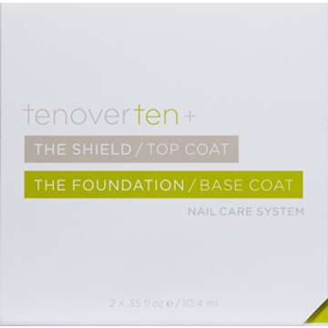 Discover the complete nail care revolution with the Tenoverten Nail Care System: The Shield & The Foundation Set. This expertly crafted duo is designed for those who cherish healthy, beautiful nails and aim to elevate their personal nail care routines at home. With an intuitive blend of nourishment and protection, this set comprises two essential components: 'The Shield,' a top coat that secures your manicure, and 'The Foundation,' a base coat that strengthens and primes your nails. Both...