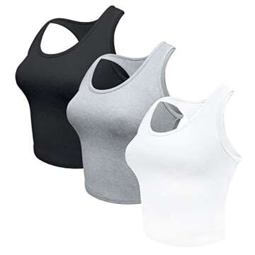 Tenpluszero 3 Pieces Cotton Basic Crop Tank Tops Sleeveless Racerback Sports Tank Tops for Women Girls Daily Wearing (Color Set 1, S)