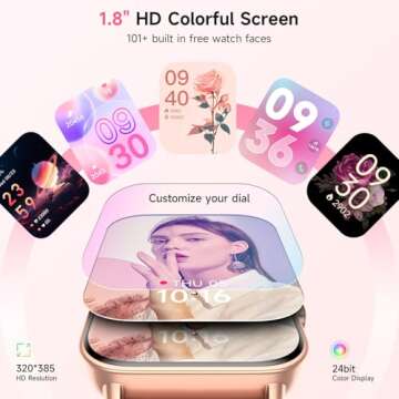 But this smartwatch isn't just about connectivity—it's equipped with a powerful **Alexa voice assistant** that lets you perform a variety of tasks hands-free. From setting alarms to checking the weather or controlling your music, Alexa makes your life easier. The 1.8-inch HD touch screen provides vibrant colors and responsive touch, complemented by the option to customize your watch face with over **100 designs** through the 'VeryFit' app, allowing you to express your unique style.