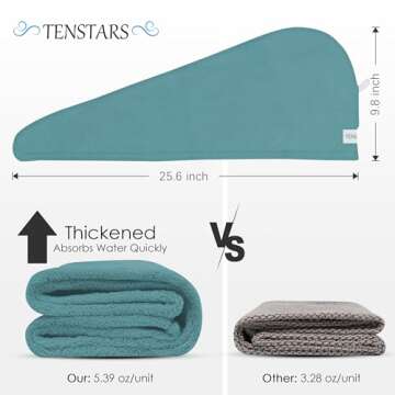 TENSTARS 5 Pack Thicken Microfiber Hair Towel Wrap for Women - Elastic Loop Design - 320GSM Coral Velvet - Quick Dry Hair Turban - 11x28 Inch (Aqua Green+Pink+Burgundy+Teal+Grey)