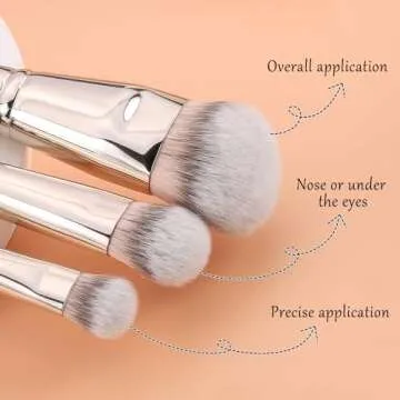 TEOYALL Flat Angled Brushes, Flawless Foundation Brush Under Eye Concealer Brush Bronzer Brush with Liquid Cream Powder