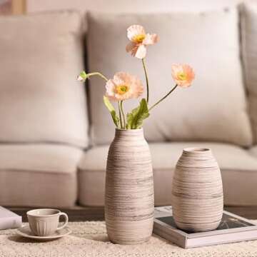 Why You will Love This Product? These vases are more than just decorative items; they are pieces that tell a story. Their rustic charm not only enhances the visual appeal of your home but also evokes a sense of warmth and nostalgia. Imagine brightening up a loved one's day with these elegant vases, filled with their favorite flowers as a symbol of your thoughtfulness. They create a cozy atmosphere, making every space feel more inviting and alive.